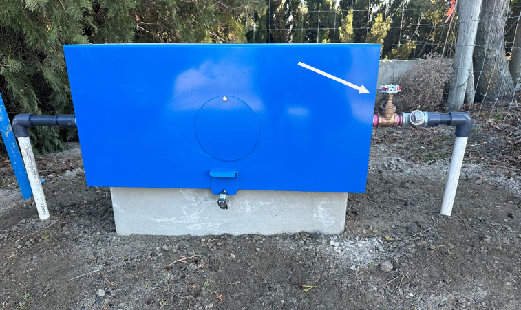 The City of Penticton is in the process of making upgrades to the irrigation system service connections. System users with a new blue irrigation service connection similar to the one shown below will find the system loaded to the point of the gate valve on the homeowner side of connection (indicated by the arrow).