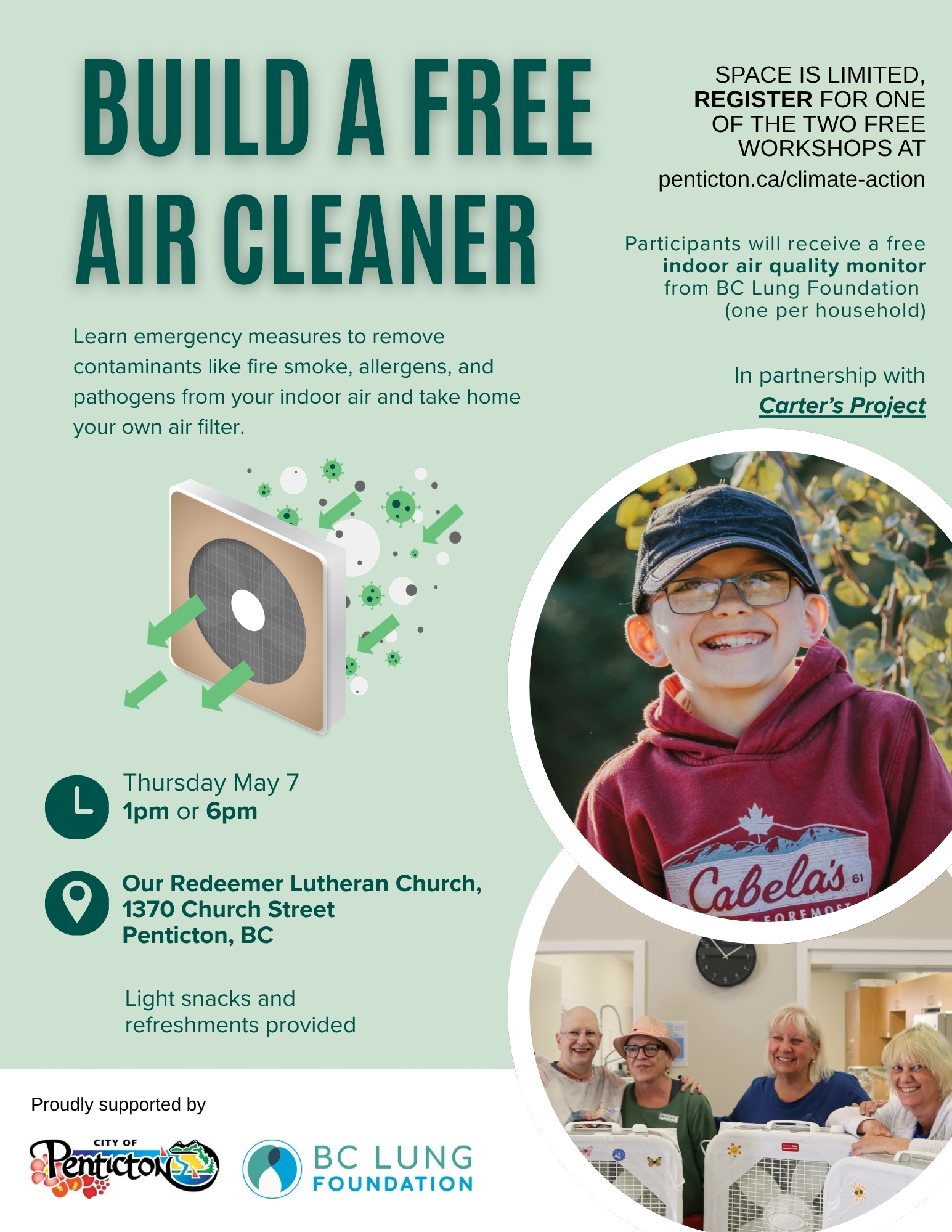 Join the City of Penticton in collaboration with BC Lung Foundation for a fun and hands-on workshop where you'll learn how to make your very own air filter from scratch. Perfect for anyone looking for a free way to boost indoor air quality. This is an in-person event, so come ready to get creative and meet other community members. No experience needed, just bring your curiosity.