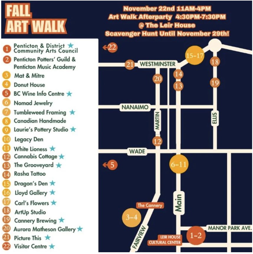 Walk, ride, or drive to 22 venues across Penticton in the annual Penticton Fall Art Walk, happening November 22nd from 11:00 AM to 4:00 PM!
